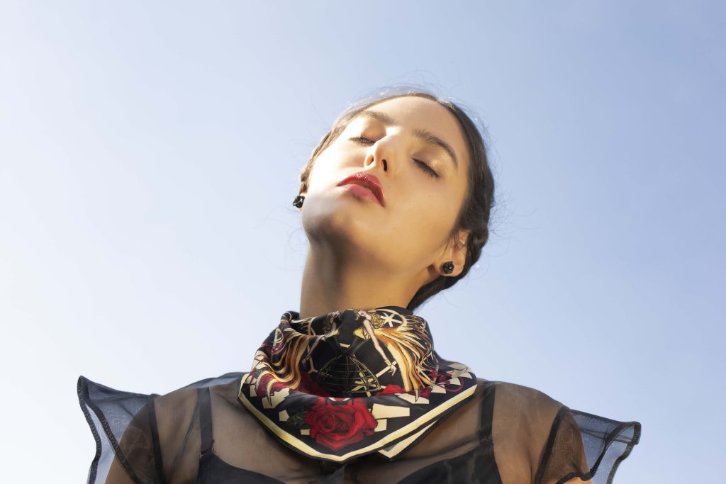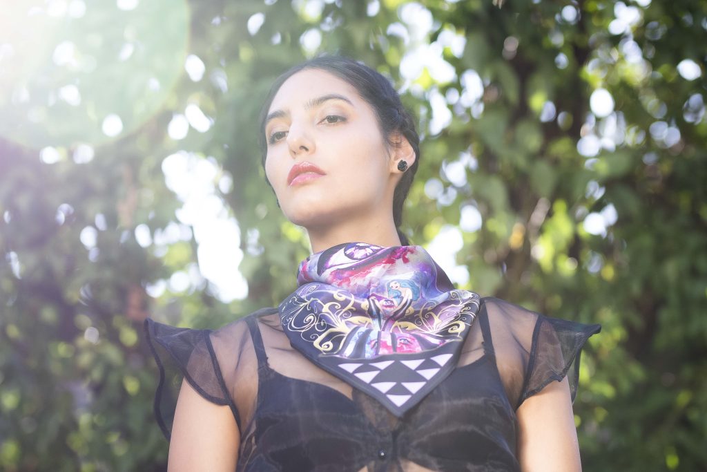 Foulard de satén eco-friendly con estampados de lujo. El accesorio artístico imprescindible.