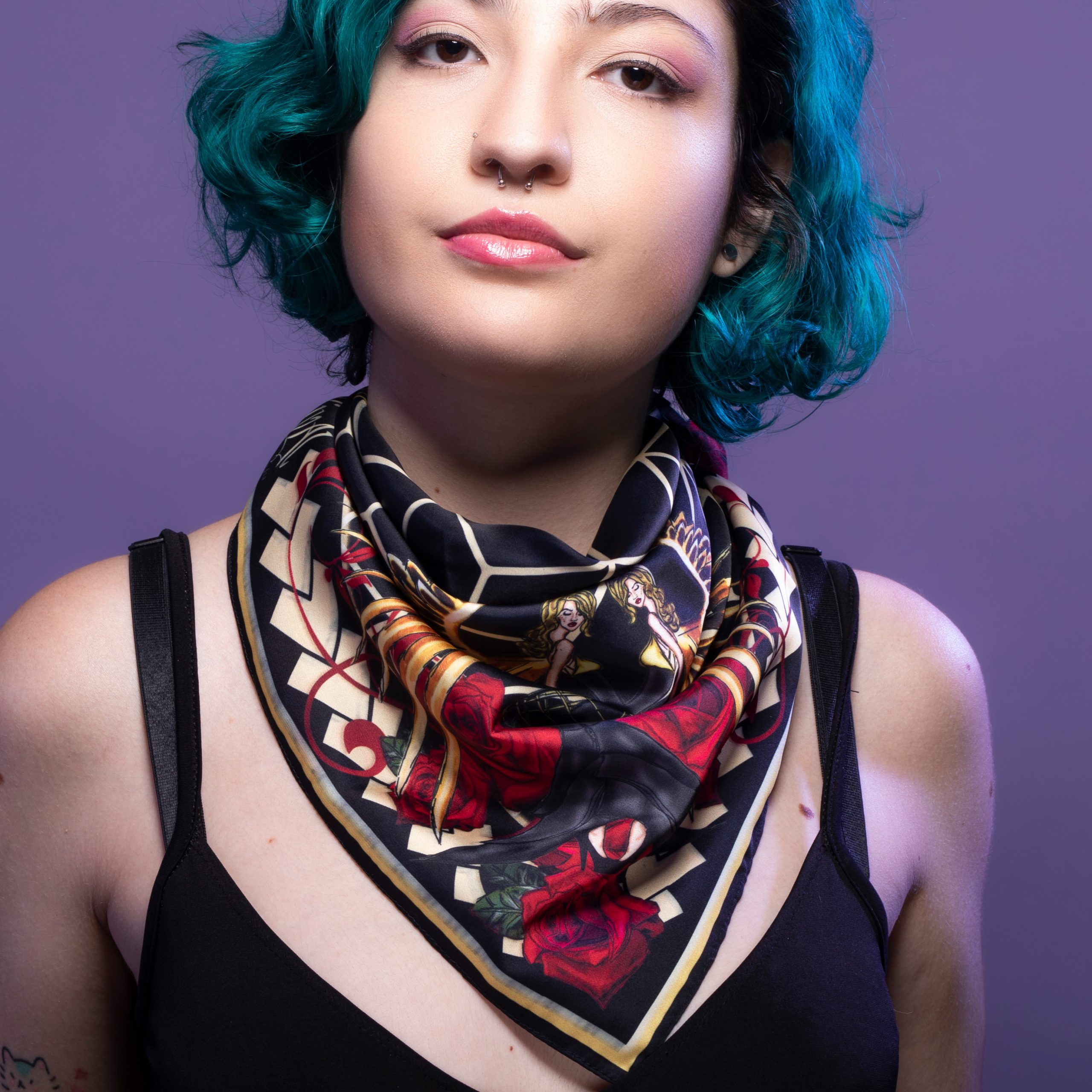 Añade un toque de elegancia con nuestro pañuelo de la linea “ALCHEMIST”. Inspirado en la belleza y audacia, este pañuelo es la expresión perfecta de feminidad y estilo.