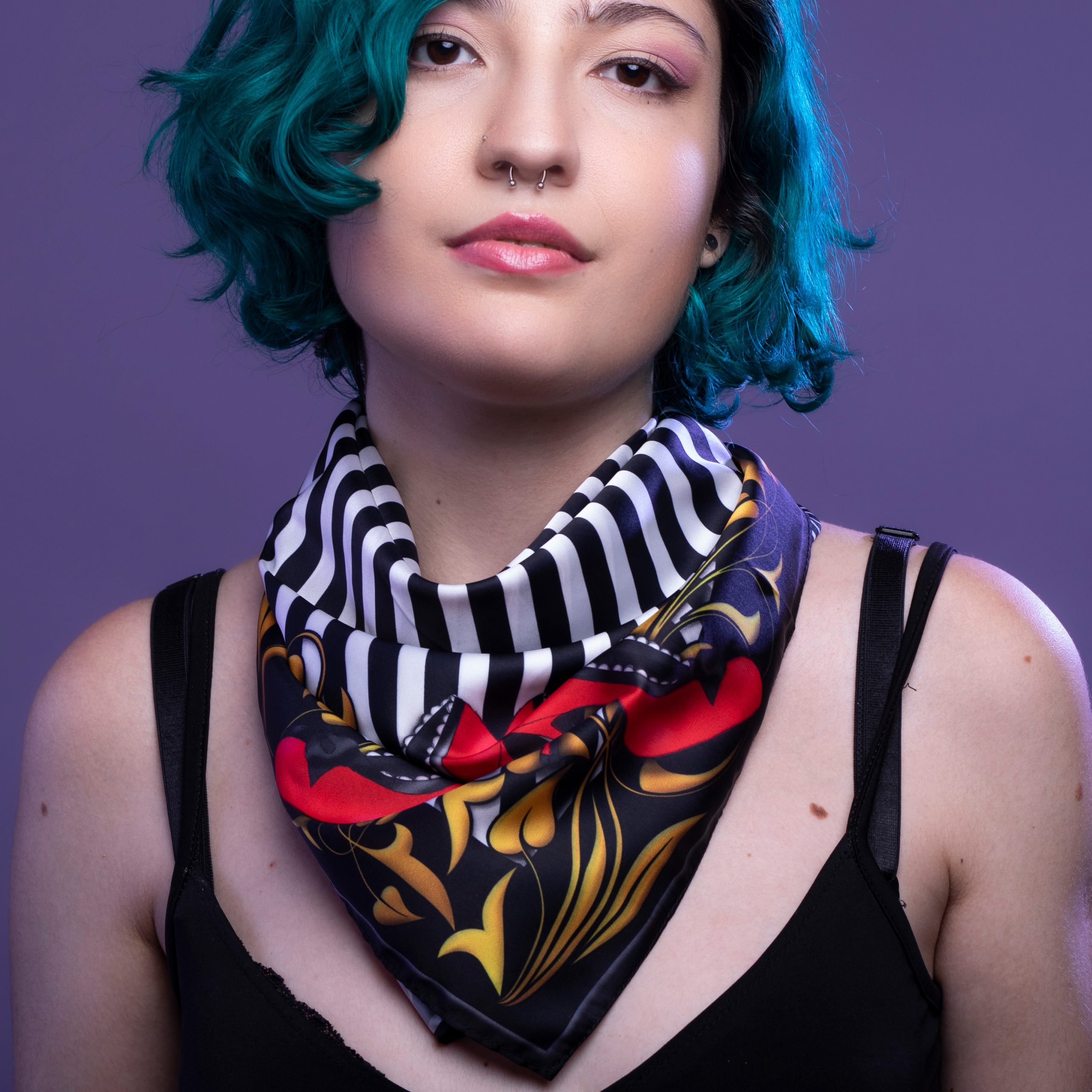 Añade un toque de elegancia con nuestro pañuelo de la línea “ALCHEMIST”. Inspirado en la belleza y audacia, este pañuelo es la expresión perfecta de feminidad y estilo.